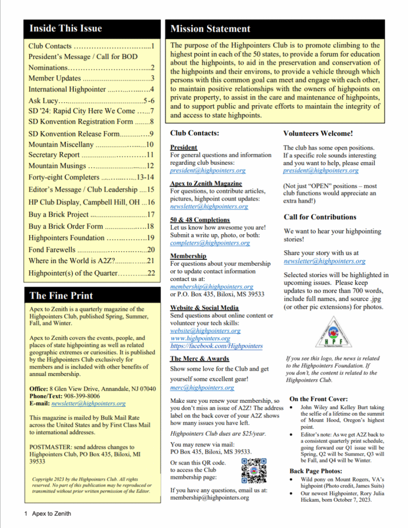 Apex to Zenith Issue 139 has shipped. If you do not receive yours soon, please complete our google form for missing newsletters. Don’t forget, your newsletter tell you how many issues you have remaining! Just check the back by your mailing address. If you need to renew, you have online and mail in options. If you let your membership lapsed and missed Issue 139, we want you to come back and join us!