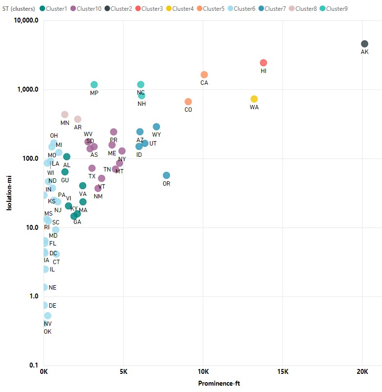 * – Note that Connecticut doesn’t have prominence or isolation because it is a contour line on the side of Mt Frissell. Thus these measures have no meaning.