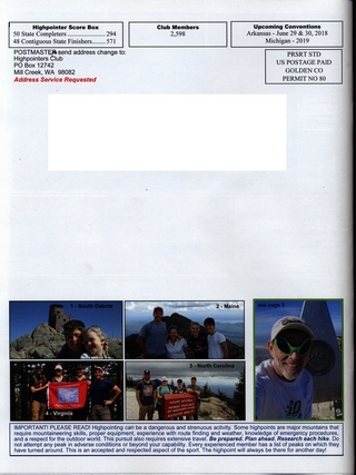 Highpoint Updates • California – Mt Whitney • Canada • Colorado – Mt Elbert • Hawaii – Mauna Kea • Illinois – Charles Mound • Maine – Katahdin • Maryland – Hoye Crest • Michigan – Mt Arvon • Minnesota – Eagle Mountain • New Jersey – High Point • New York – Mt Marcy • North Dakota – White Butte • Puerto Rico – Cerro de Punta • South Carolina – Sassafras Mountain • Tennessee – Clingmans Dome • Utah – Kings Peak | 28 – 29 |
