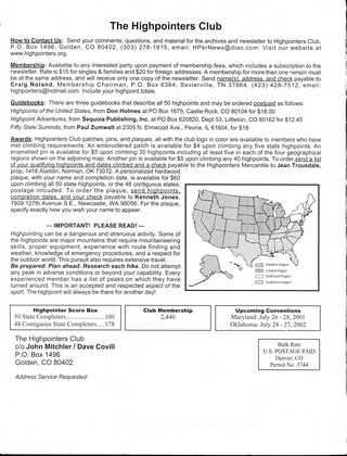 | Highpoint Updates • Alaska – Denali • Arizona – Humphyreys Peak • Hawaii – Mauna Kea • Maryland – Backbone Mountain • Michigan – Mt Arvon • Minnesota – Eagle Mountain • Mississippi – Woodall Mountain • New Hampshire – Mt Washington • New Mexico – Wheeler Peak • New York – Mt Marcy • Ohio – Campbell Hill • Pennsylvania – Mt Davis • Rhode Island – Jerimonth Hill • South Dakota – Harney Peak • Washington – Mt Rainier • West Virginia – Spruce Knob |